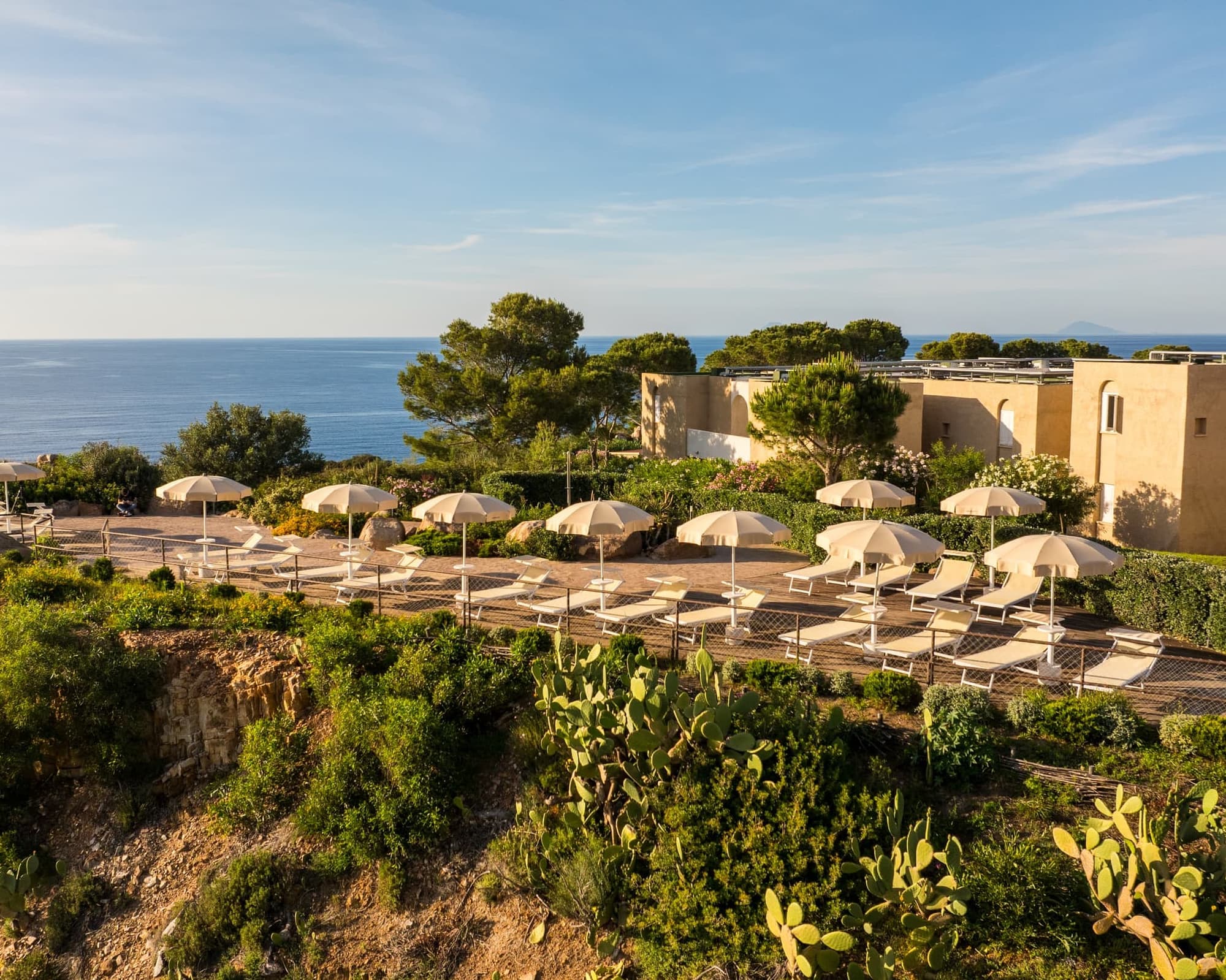 Il Mangia’s Pollina Resort, Sicily con oltre venti ettari di parco naturale si erge su un promontorio con una vista mozzafiato sulle Isole Eolie.